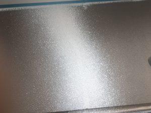 今回は、ひび割れ箇所のみ部分的な模様復旧でしたが、ひび割れの状態によっては、厚付け施工といって、多孔質ローラーでリシンの模様自体を変えてしまう工法もございます。