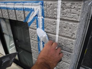 そしてマスキングテープで養生した後、新たにシーリングを打ちます。