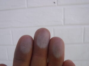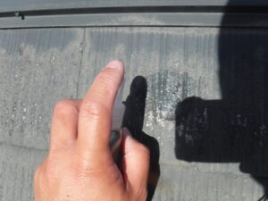 上の写真のように外壁を軽く手でこすると、白い粉が付くことがありますが、これをチョーキング現象と言います。