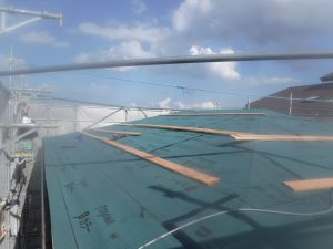 ルーフィングシートは大きな1枚のシートではなく、約1m幅の長いシートで、必要な分をカットして使います。そのため、部分的な補修にも対応可能です。