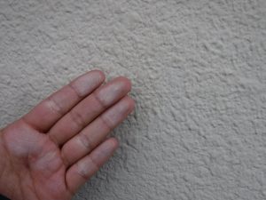 塗膜はシリコンやフッ素といった樹脂と色を付けるための顔料、添加剤等が結合してできています。そのうちの顔料が経年劣化とともに表面に浮き出てしまっている状態です。