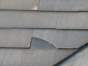 瓦自体の強度が低く、ひび割れや欠損、それによる剥落が主な症状です。