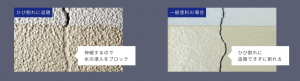 それは、たとえ外壁材がひび割れしてしまっても、塗膜が伸びてくれるので、ひび割れが表面まで出てきません。したがって、ひび割れが表面にでないので、水の侵入する危険もありません。