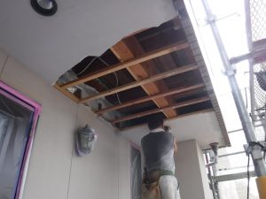 先日、塗装工事をさせて頂いたお客様で軒天が傷んでいるので軒天交換をしました。
