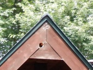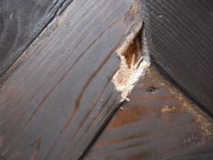 先日、ログハウスの塗装工事の依頼を頂いたお客様の御宅にキツツキ穴がありました。