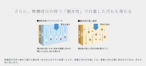 そしてたとえその隙間に汚れが入ってしまっても、さらなる一手が待ち構えます。それは、この塗料が持つ親水性という特徴です。