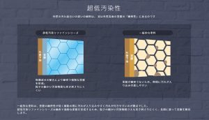 この二つの性質「塗膜の緻密化」「親水性」により、超低汚染性を実現しています。