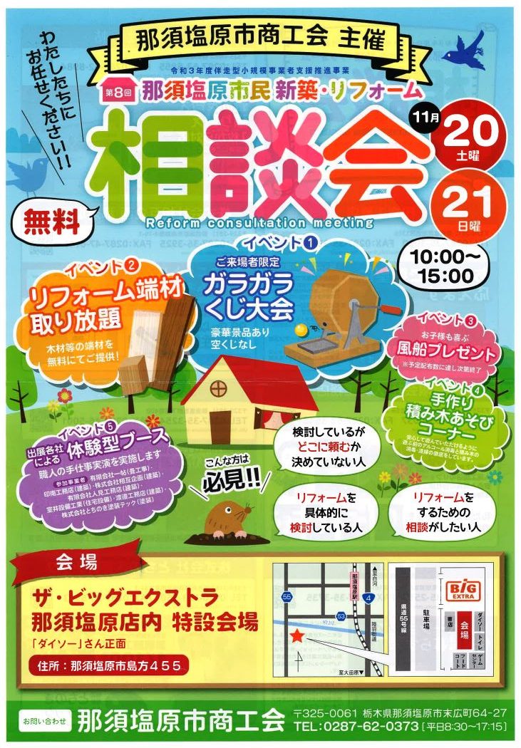【那須塩原市】新築・リフォーム相談会開催!(小野崎)那須塩原市・大田原市・矢板市・那須町近辺の屋根塗装、外壁塗装ならとちのき塗装テック