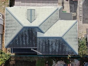 大屋根はカバー工法にて横暖ルーフαsを用いています。