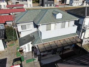 下屋根は大屋根に合わせた色での塗装を行いました!