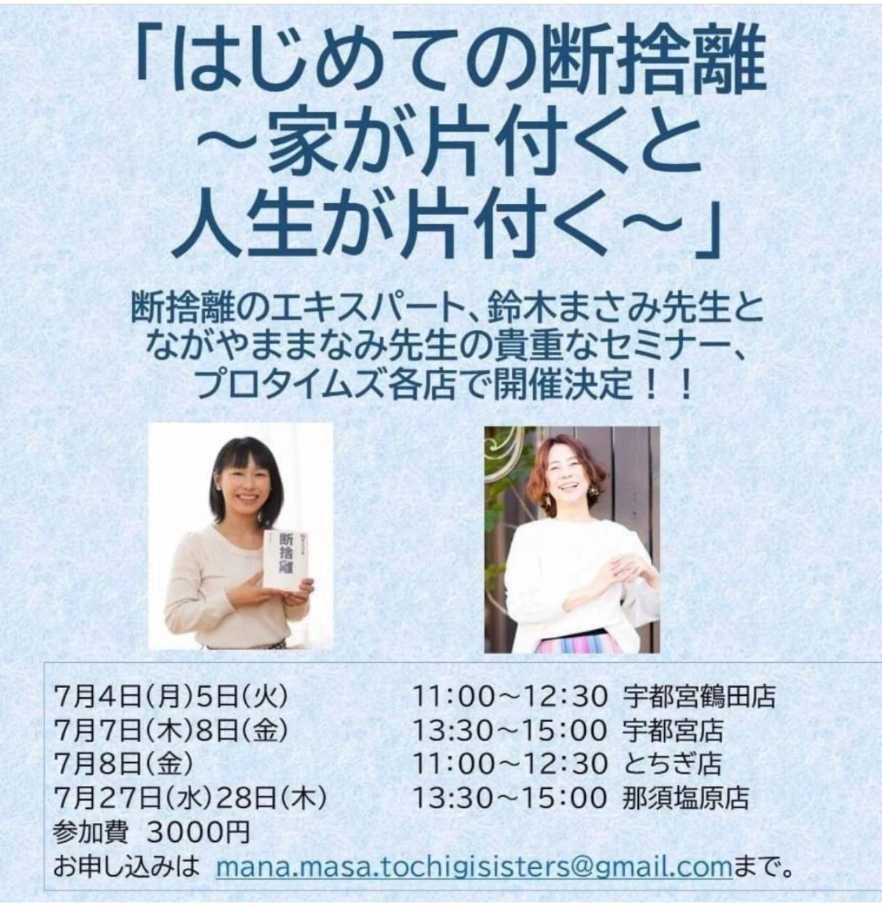 7月27日(水)・28日(木)に断捨離セミナーを開催します!