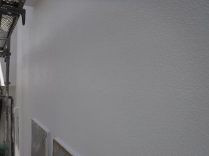 今回は、ひび割れ箇所のみ部分的な模様復旧でしたが、ひび割れの状態によっては、厚付け施工といって、多孔質ローラー(マスチックローラー)でリシンの模様自体を変えてしまう工法もございます。