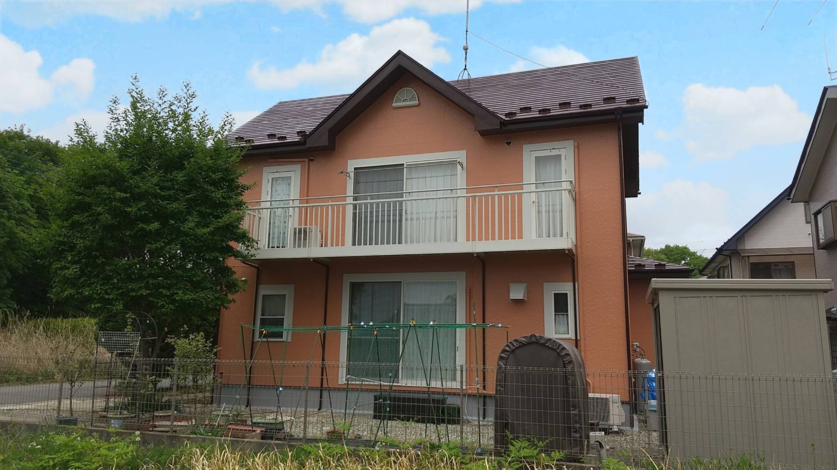 【色】 屋根:マホガニー 外壁:ワームクレイ 外壁はクリーム系からオレンジ系の色に塗り替えました! 赤系の屋根と相性ピッタリの素敵な仕上がりになりました!!