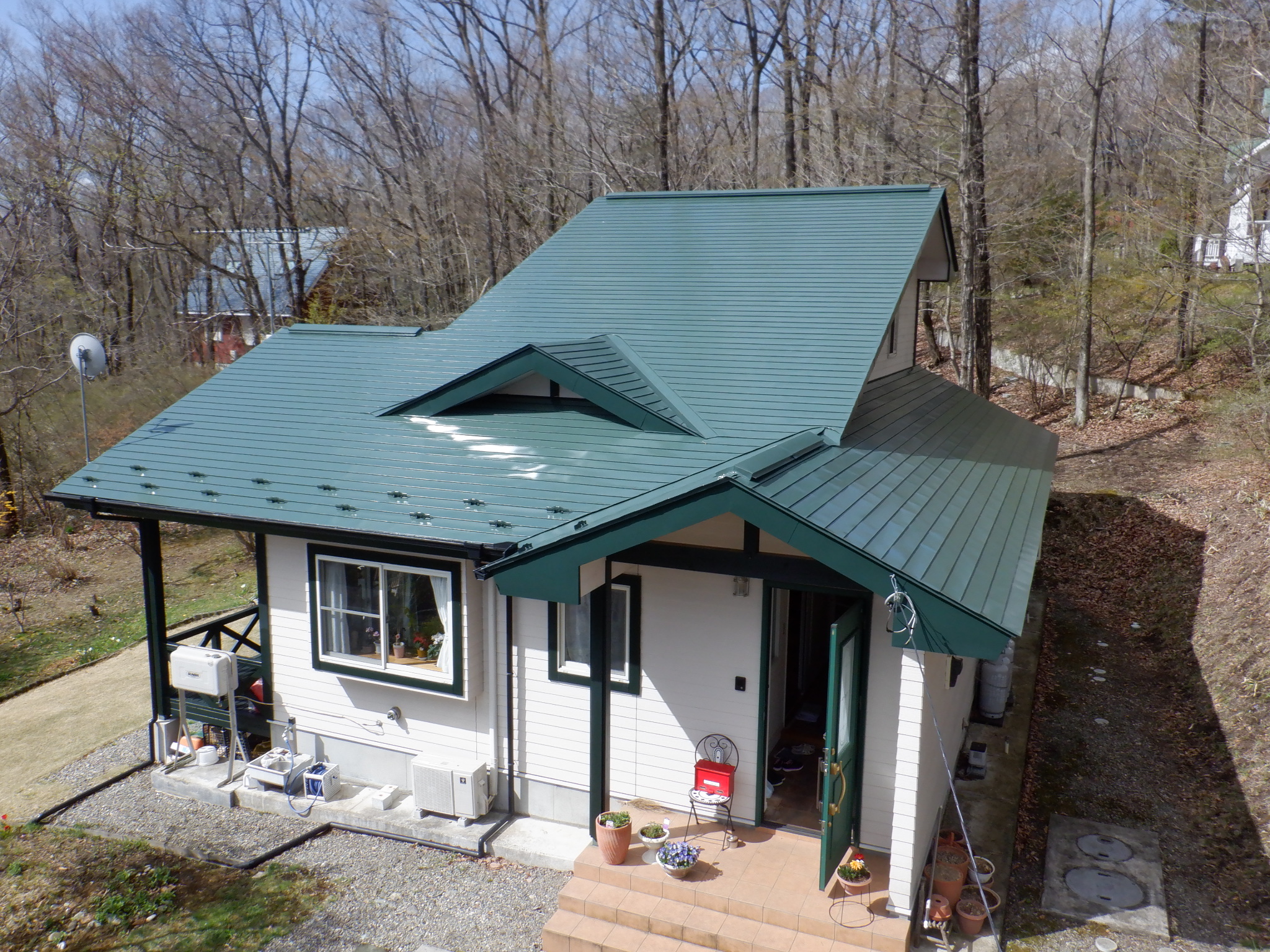【色】 屋根:グリーンレイバー 塗り替え前と同じグリーン系の色で仕上げました!