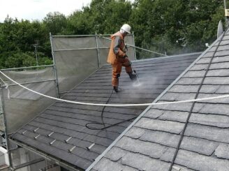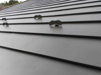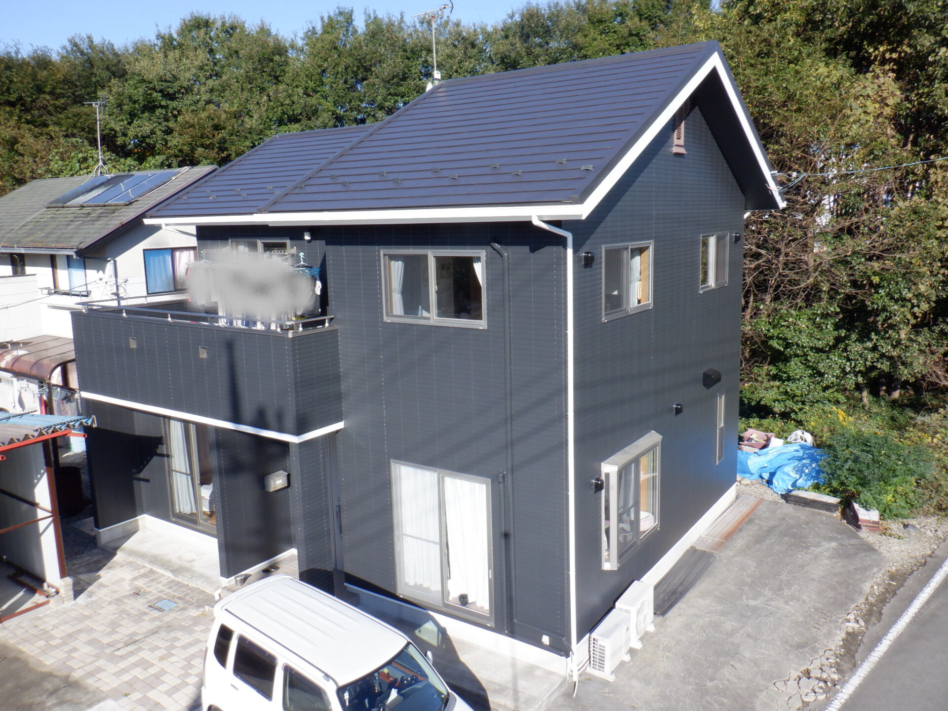 外壁塗装 色:チャコール 屋根カバー工事 横暖ルーフαSを使用