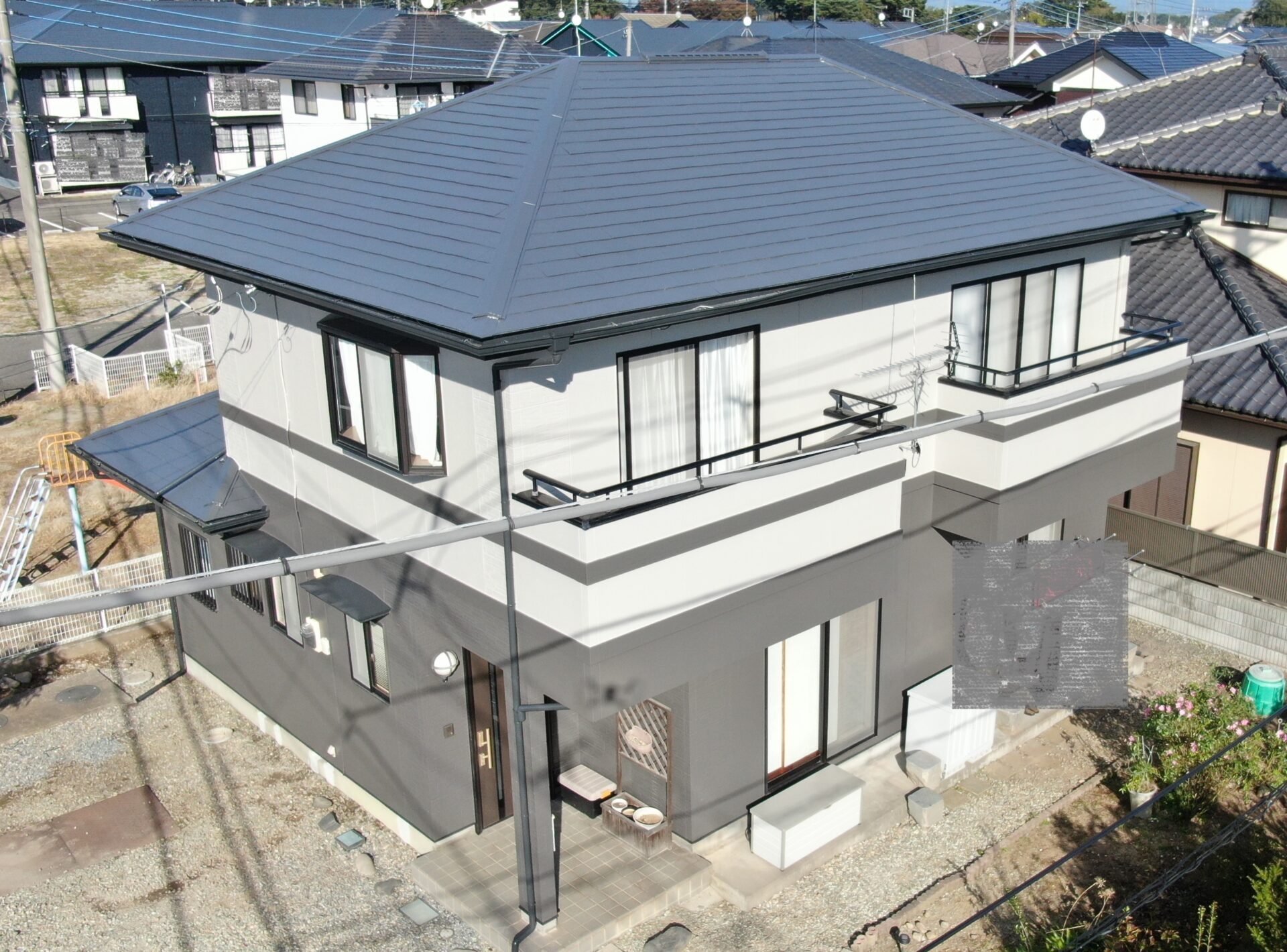 外壁は2色を使用しました。ホワイト系とブラック系を使用することで、シックな印象に仕上がりになりました!