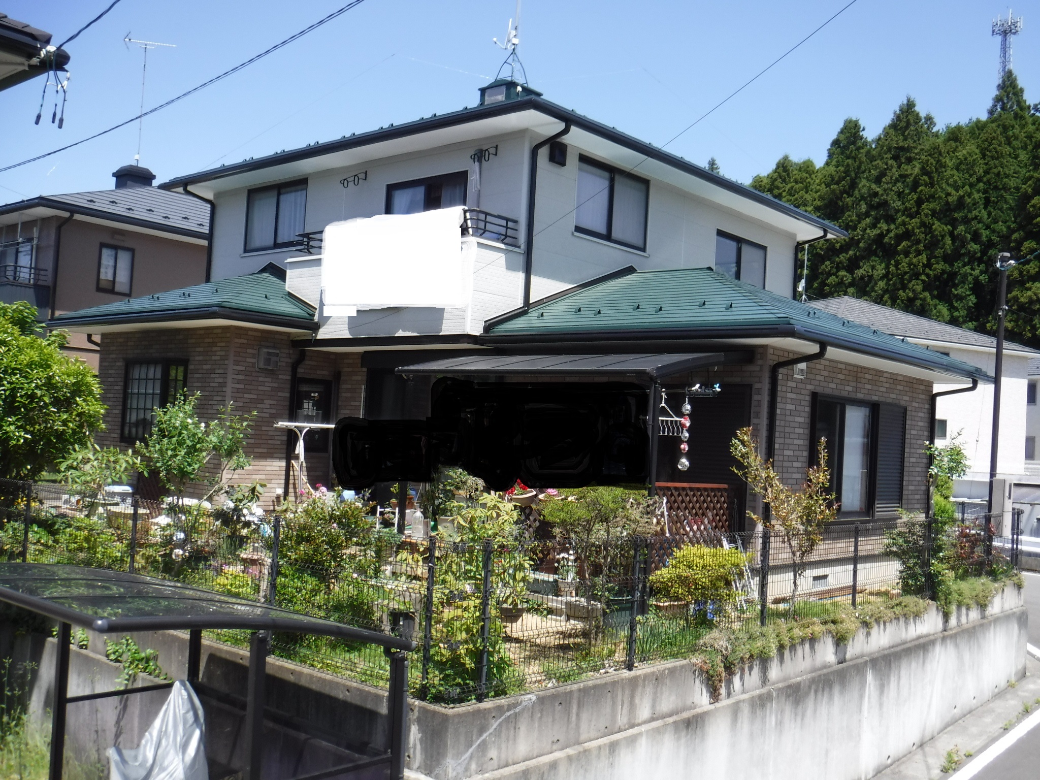 黒いスレート屋根から、緑へ塗り替えです。今回は屋根塗装・付帯部塗装だけでしたが、色が変わり、大きく印象が変わりました!