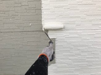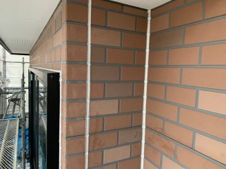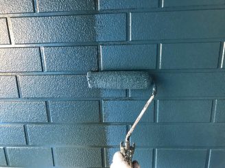 タイル調のサイディングの色をボタニック(明るめのグリーン)かカレッジグリーン(濃いめのグリーン)で悩んでいらっしゃいましたが、試し塗りをしたことで、カレッジグリーンで施工が決まりました。タイル調のサイディングの風合いにあった落ち着いた仕上がりになりました。お客様にも大変ご満足いただき、よかったです。