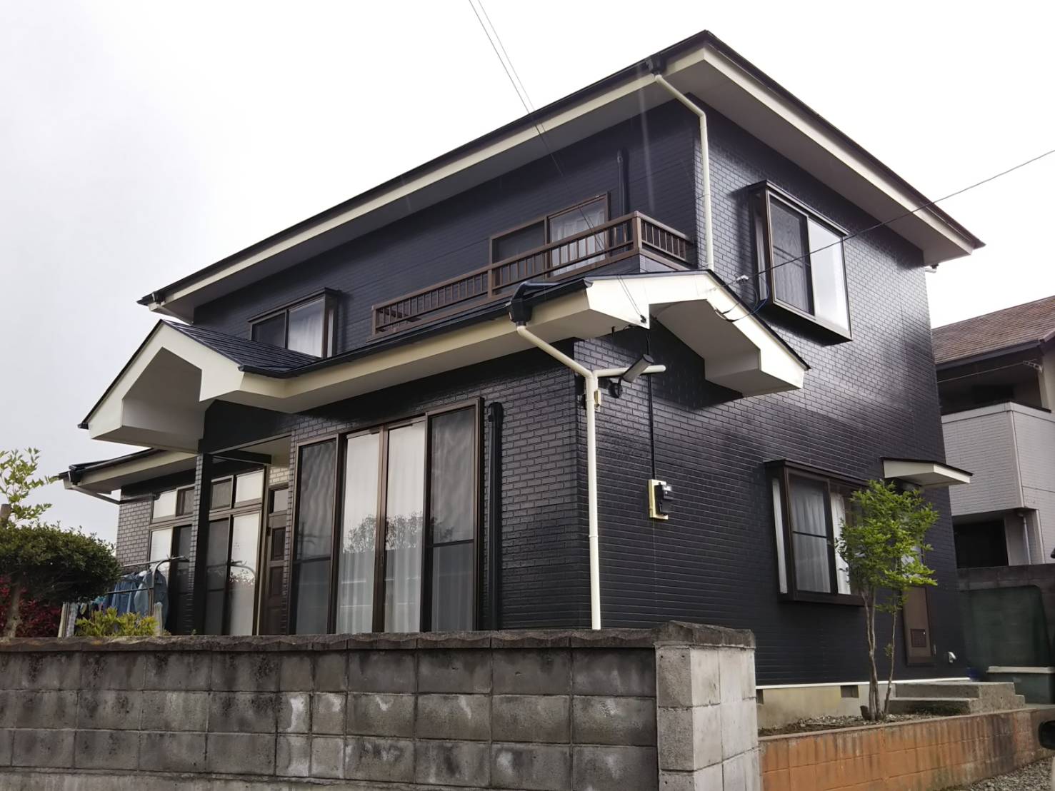 チャコール1色で仕上げました。破風樋にホワイトリリィを入れ、かわいい雰囲気に。施主様にもご満足いただきました。