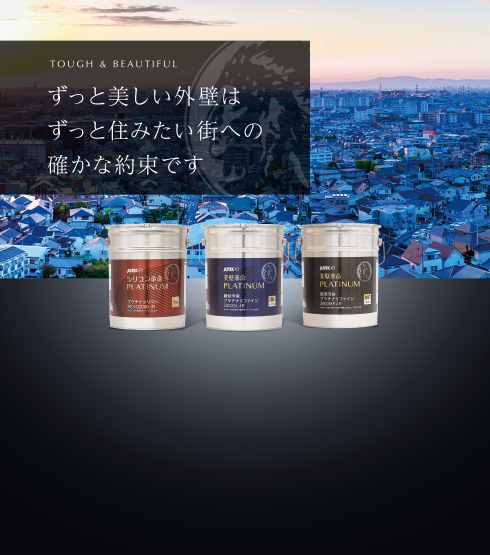 超高性能塗料”プラチナシリーズ”は、アステックペイントの塗料の中でも住まいを永く守り続けるために厳選された最高峰塗料ラインナップ。
