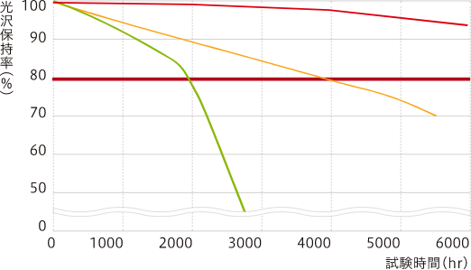 ※1 期待耐用年数 ※あくまで試験環境下における推測値であり、耐候性を保証するものではありません。実際の自然ばく露環境下では、